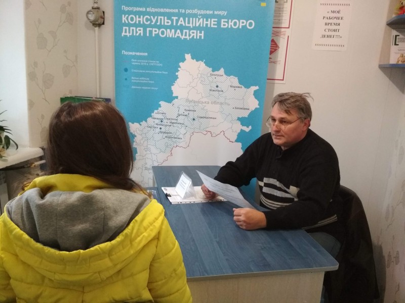 Уже на протяжении двух лет, в Луганской области работают Консультационные Бюро для граждан в городах Северодонецк, Рубежное, Лисичанск, Кременском и Попаснянском районах. Работу Бюро администрирует общественная организацией «Громадська платформа» при поддержке Программы ПРООН Восстановления и развития мира при поддержке Швейцарской Конфедерации и Швеции. Консультационные Бюро предоставляют гражданам ряд услуг: обеспечивают местной информацией, консультируют в чрезвычайных ситуациях и оказывают социально-психологическую и правовую помощь.