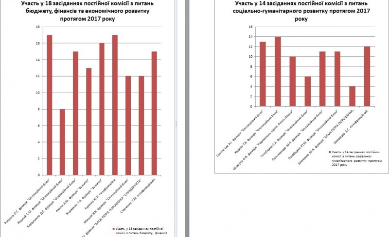 Фракции, которые по количеству депутатских мандатов в городском совете занимают первое и второе место, а именно «Оппозиционный блок" (18 депутатов) и БПП (5 депутатов) по уровню посещаемости не являются лидерами, а занимают в рейтинге посещаемости третье и четвертое место соответственно.