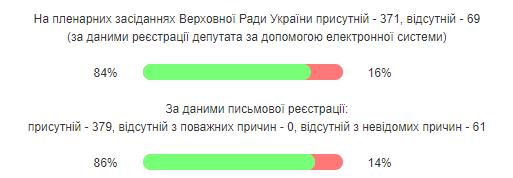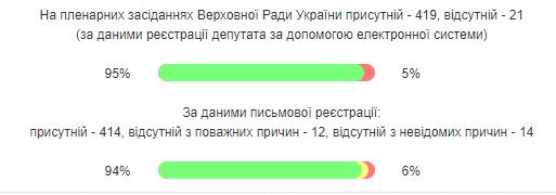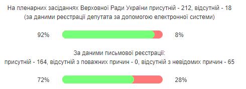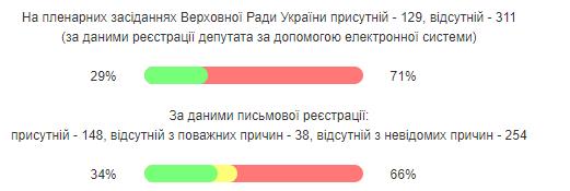 Посещаемость пленарных заседаний Верховной Рады Украины депутатами следующая: