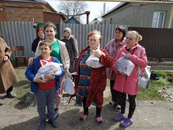 - Розповсюдження продуктово-гігієничних наборів e містах Слов’янськ та Добропілля за участі соціальних служб.