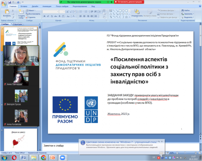 24 жовтня відбулось засідання круглого столу за темою “Посилення аспектів соціальної політики з захисту прав осіб з інвалідністю» з представниками міста Кривий Ріг Дніпропетровської області.