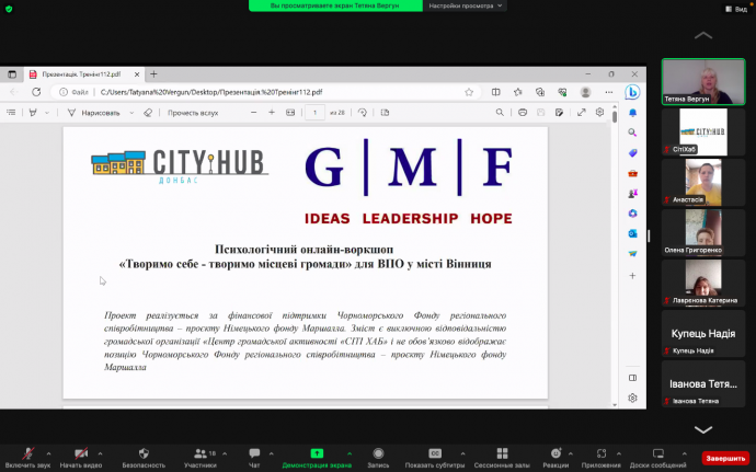 Психологічна підтримка та розвиток для внутрішньо переміщених осіб: воркшоп «Творимо себе - творимо місцеві громади»