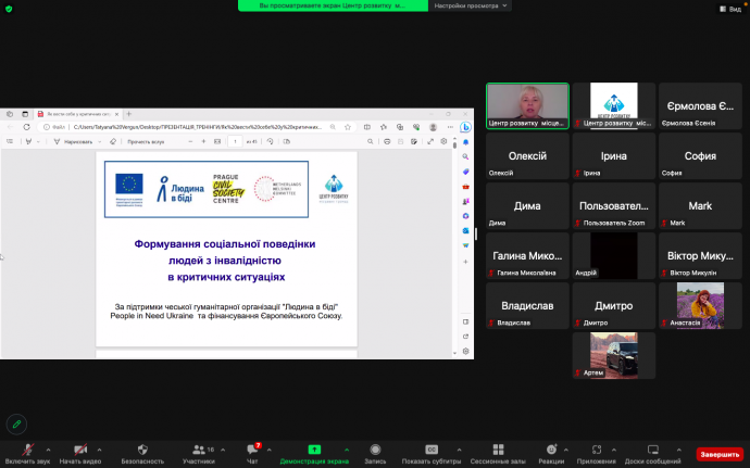 У цілому, вебінар «Формування соціальної поведінки людей з інвалідністю в критичних ситуаціях» був корисним для всіх учасників, дозволивши їм покращити свої навички спілкування та вирішення проблем, а також збільшити свідомість та розуміння важливості соціальної поведінки.