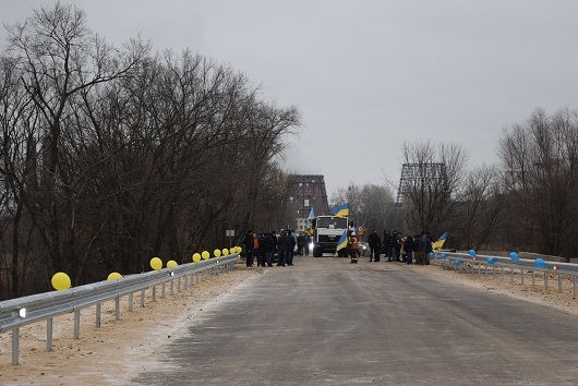 Мост был разрушен в 2014 году в результате боевых действий и восстановлен в 2016 году за счет гранта Европейского Союза.