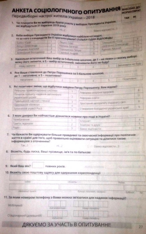 На Луганщине проводится соцопрос об отношении к Петру Порошенко со сбором персональных данных респон