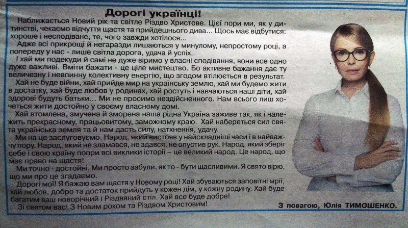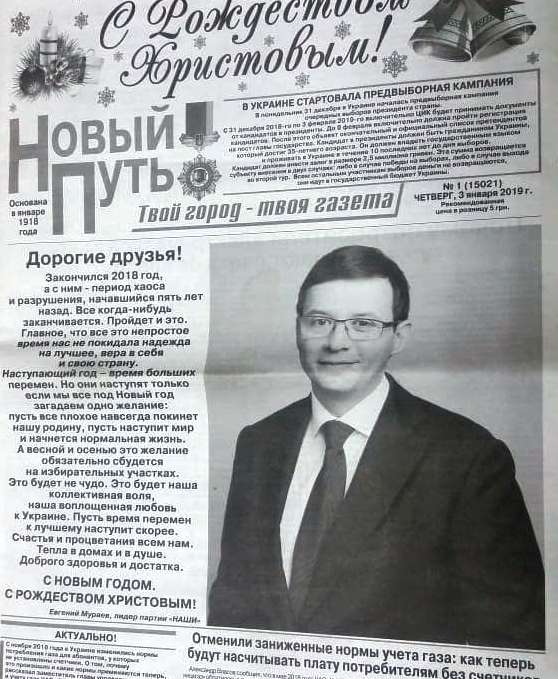 Лидер партии «Гражданская позиция» Анатолий Гриценко поздравил людей с праздниками на страницах «Жизнь Белокуракинщины» № 71 (10539) от 29 декабря 2018