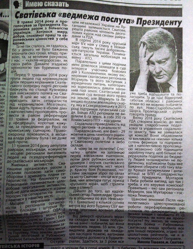 Зато, деятельность народного депутата Украины, избранного по 114 одномандатному округу Сергея Шахова, а также его приветствие, в основном, распространяются на районы, которые входят в этот избирательного округа, а именно - Беловодский, Марковский, Меловской, Новопсковский и Станично-Луганский районы Луганщины ( «Слово хлебороба» № 52 (9692) от 29 декабря 2018, Меловской район, «Известия Маркивщины» №52 (10307) от 29 декабря 2018, «Жизнь Белокуракинщины» № 71 (10539) от 29 декабря 2018 , №3 (10542) от 19 января 2019, «Время» № 52 (11209) от 28 декабря 2018, № 1 (11210) от 4 января 2019 г., Станично-Луганский район. Фигурирует народный депутат также на страницах изданий Северодонецка - «Северодонецкие вести» № 51 от 21 декабря 2018, № 52 от 28 декабря 2018, Сватовского, «Сватовские ведомости» № 52 (686) от 26 декабря 2018 и Станично-Луганского районов - «Время» № 51 (11208) от 21 декабря 2018, от 21 декабря 2018, № 52 (11209) от 28 декабря 2018, №1 (11210 ) от 4 января 2019.