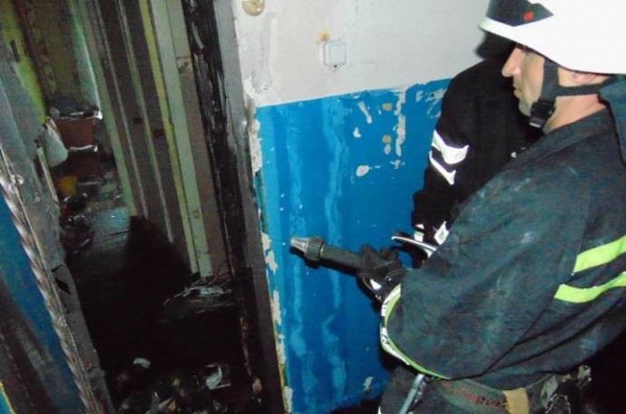 Прибыв на место происшествия и проведя разведку, спасатели 12-й ГПСЧ установили, что горит внутренняя обшивка входных дверей жилой квартиры.