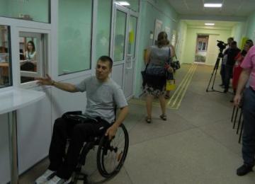 Для удобства посетителей с инвалидностью установлено пандус, кнопку вызова специалиста, тактильные контрастные накладки на лестнице и в зале ожидания, а также таблички со шрифтом Брайля.