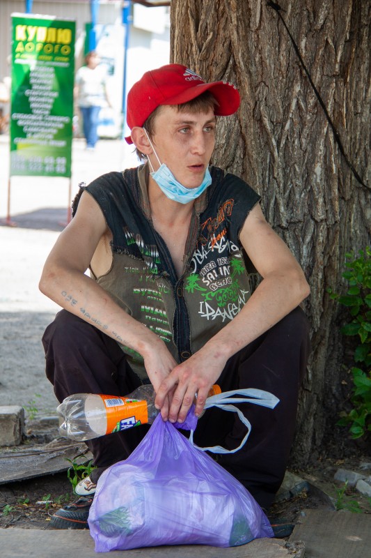 Це Павло. На вигляд він значно старше за свої роки. Дитинство Павла припало на 90-ті роки. Павло жив у двокімнатній квартирі разом із мамою та батьком. Мама сильно хворіла та лежала протягом двох років, батько почав прикладатися до чарки. Коли мати поховали, батько два роки пив, накопичувалися борги за квартиру. Зрештою батько прийняв рішення обміняти квартиру на будинок під Лисичанськом.Поки переоформлювали житло, батько помер, і Павло залишився один. Йому було 17 років. Працювати було ніде, і він відправився на заработкі. Був у Києві, в Харкові, знайти нормальну роботу не вдавалося, працював неофіційно, деякі роботодавці взагалі не платили.
